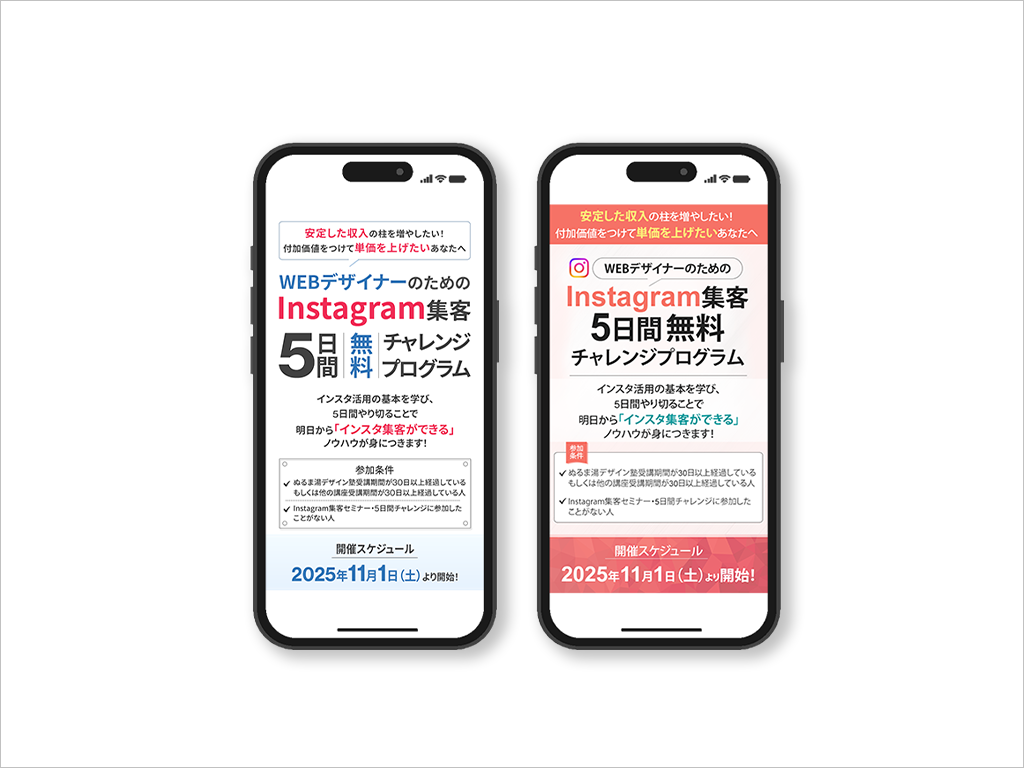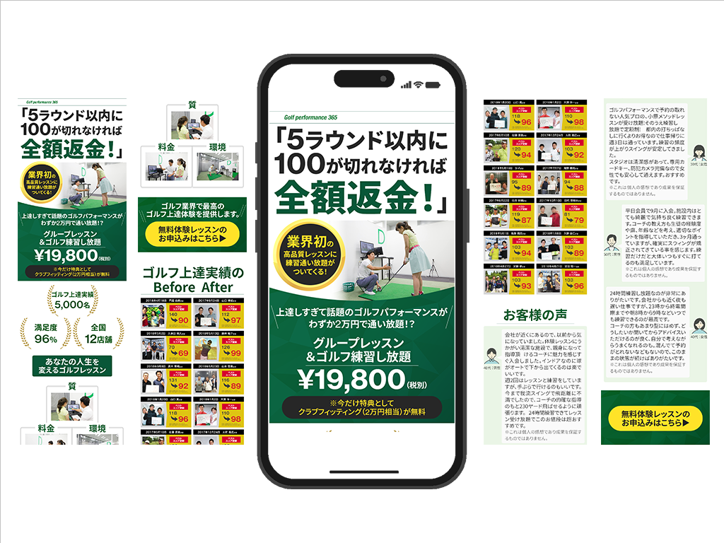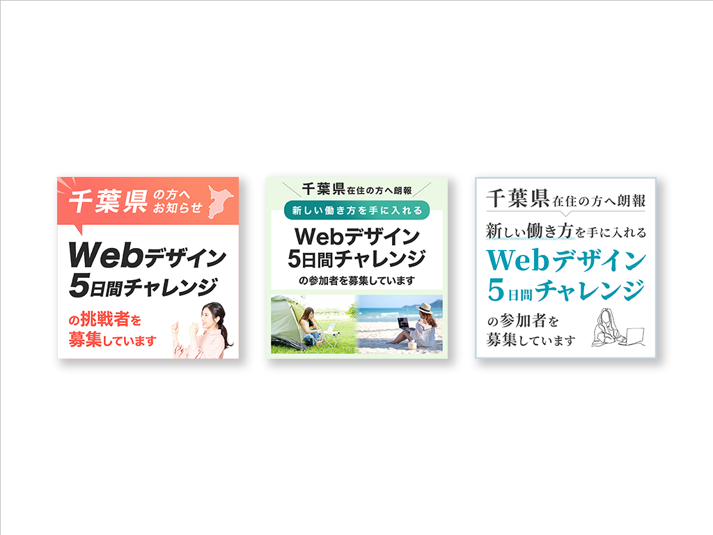 「伝えたい内容がきちんと伝わること」を大切にし、見た目の美しさだけでなく、クリック・反応につながる構成や文字配置を意識して制作します。